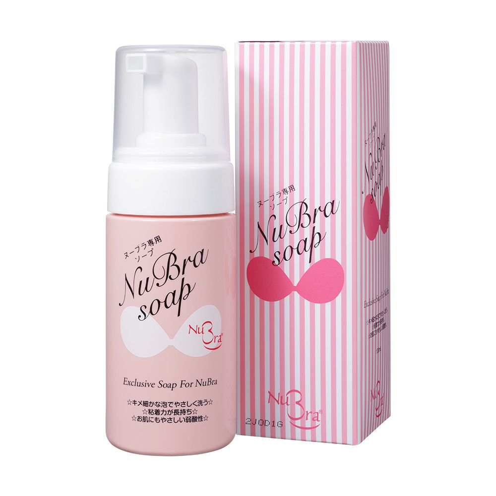 ヌーブラを洗うために開発された、専用洗剤「ヌーブラソープ」。通常の石鹸では落としにくい、皮脂や角質などの汚れをすっきり落とし、粘着力の低下を防ぎます。ヌーブラの粘着力を損なう「保湿剤」や「オイル」が含まれていないため、安心してご使用いただけるヌーブラ洗濯時の推奨洗剤です。ぜひ、ヌーブラと合わせてお買い求めください。泡で出てくるボトルなので、ヌーブラの粘着面にワンプッシュするだけでサッと洗えて便利。100ml入りで、約50回~100回(1回の使用量により異なる)の洗濯にご利用いただけます。
